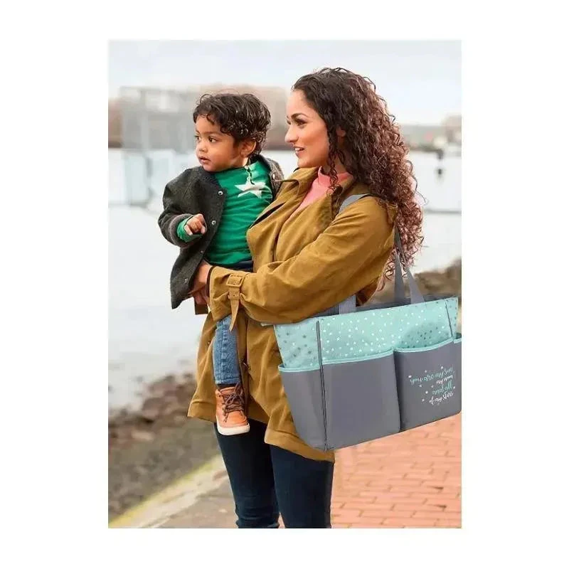 The Starry Night bag is made with love. Cute and stylish, this diaper bag purse has it all. Incredibly roomy, easily fit teething rings, pacifiers, baby shoes, clothes, and more. Features include: