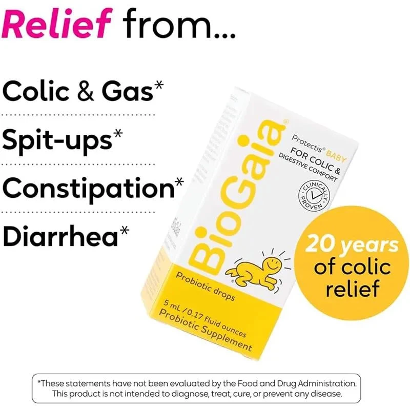 Regarded as the world’s most extensively researched probiotic for colic, BioGaia Baby is not just a product but a beacon of hope for distressed parents and their suffering infants. It works like a gentle breeze, calming the storms of colic, fussiness, and gas that cause your precious one so much discomfort.