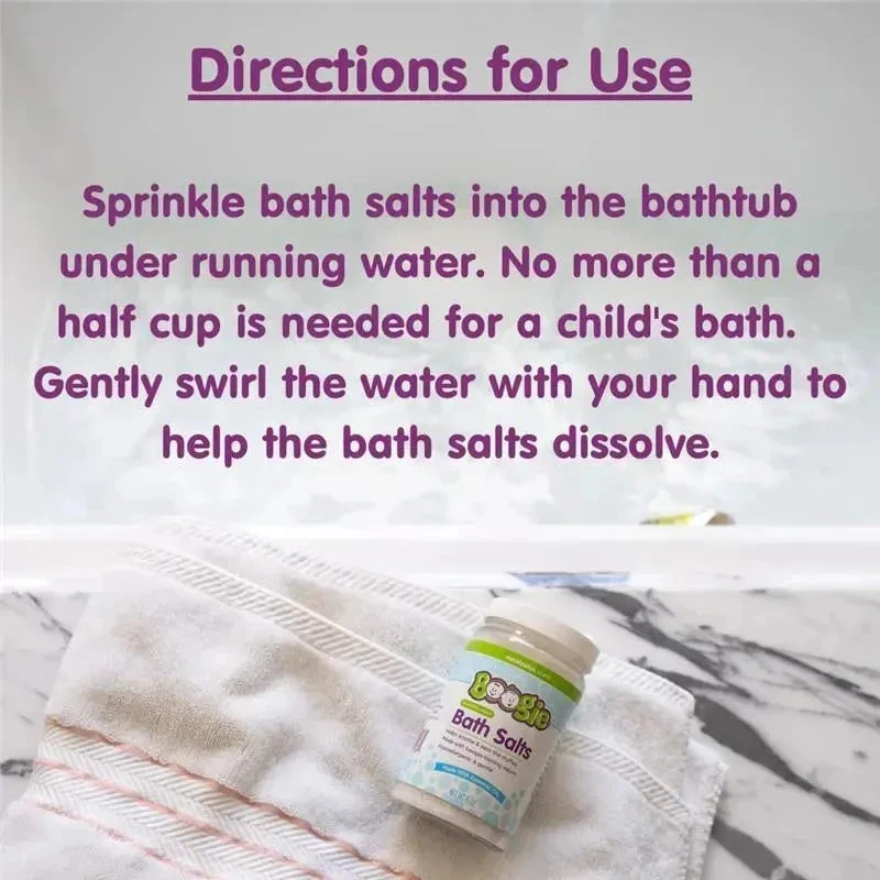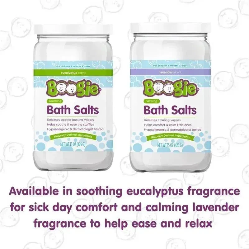FRAGRANCED WITH NATURAL ESSENTIAL OILS: Boogie Soothing Bath Salts are made with safe dilutions of essential oils like Eucalyptus and Peppermint to help soothe and provide relief. Suggested use for children 6+ months.