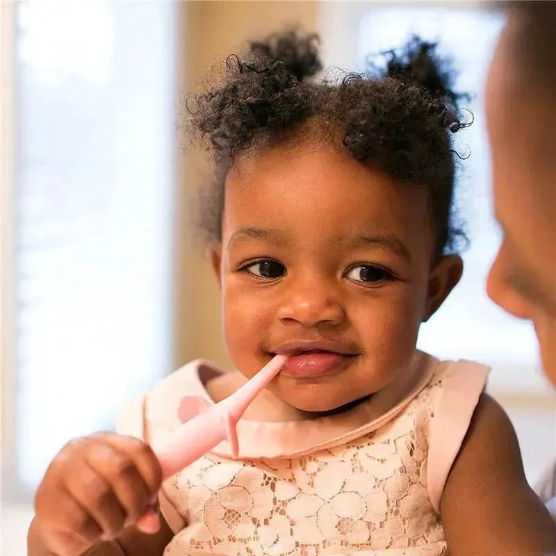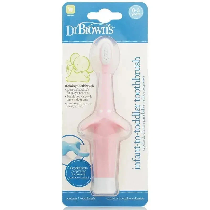 This ultra soft and safe training toothbrush by Dr Brown is gentle on sensitive gums and gums and is easy for little hands to hold.