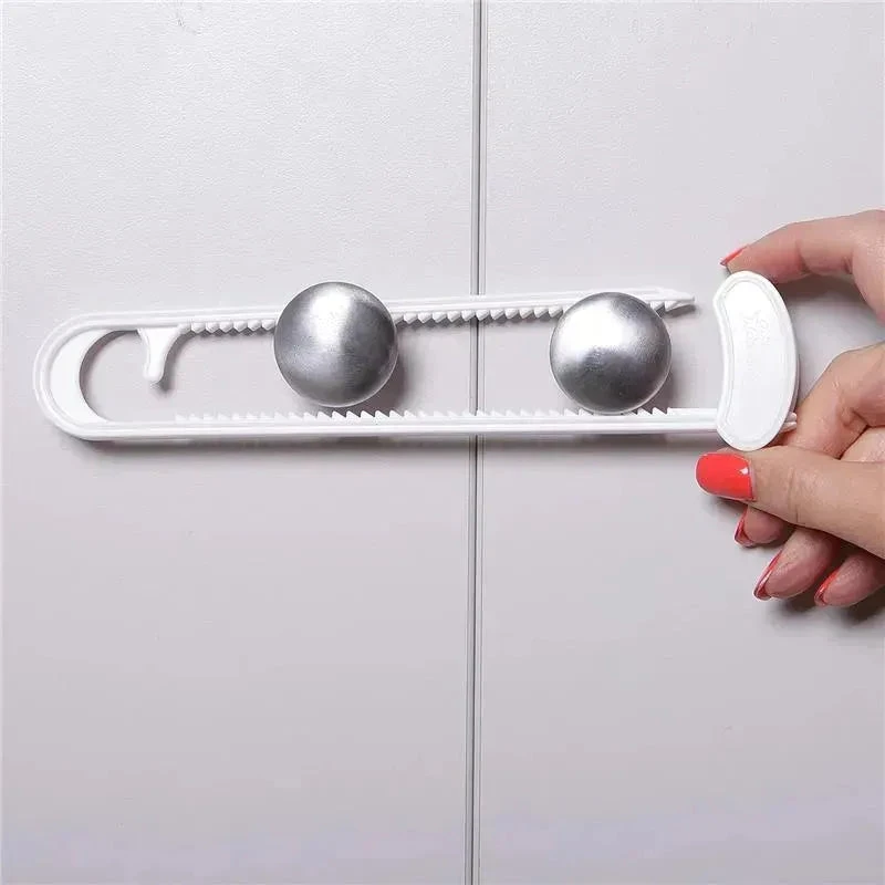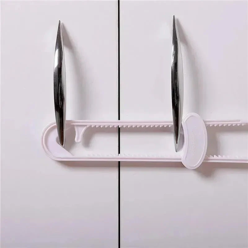 Dreambaby Sliding Locks with catch are the fastest and most secure way to lock cupboard and cabinet doors, and to help keep small children safe from what is inside. They are suitable for D-shaped handles, require no installation and can be opened with a simple one-hand manoeuvre. Simply push down and slide the lock tight against the handles.