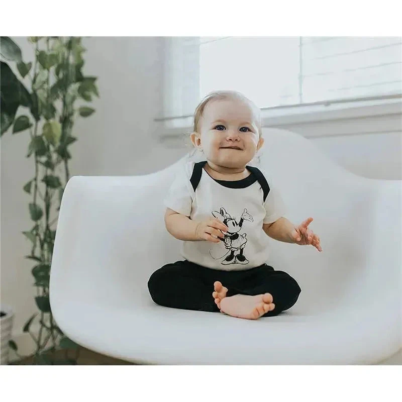 This adorable three-piece Minnie Mouse set made by finn + emma includes a bodysuit, black stretch pants, and two kerchiefs.