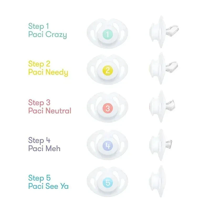 STEP 2: Offer the step 2 paci anytime. Baby may start to notice this isn’t their typical paci + want it less often.