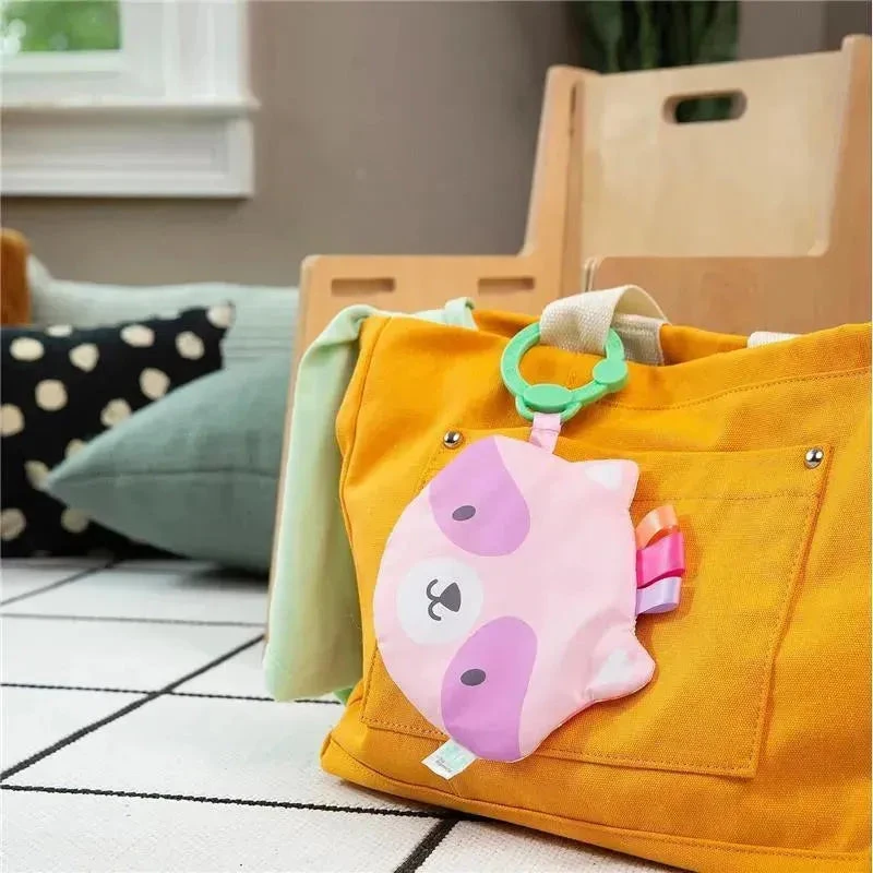 Cater to baby’s curiosity with the sensory ity by Ingenuity Crinklet – Deni. This plush crinkle toy, featuring Deni the raccoon, comforts baby at home and on the go. The crinklet is made with soft fabrics perfect for baby’s gentle touch. Deni’s adorable raccoon face serves as the ultimate comforting woodland pal for baby. The crinkle material is hidden inside the toy away from baby. The Deni crinklet is an excellent infant sensory toy that help stimulate baby’s senses while entertaining. Made with satin ribbon tags, which encourages self-soothing and open a whole new world of discovery while improving and honing baby’s fine motor skills. Also, tags help comfort baby during fussy times. Need to conquer errands or meet with baby’s lunch play date? No problem. This crinklet has a C-link great for attaching to stroller handles and diaper bags to entertain baby on the go. The crinklet easily wipes clean with a damp cloth. Deni is part of a collection of fun ity by Ingenuity characters and pairs well with its fellow cuddly creature crinklet Kitt the fox.