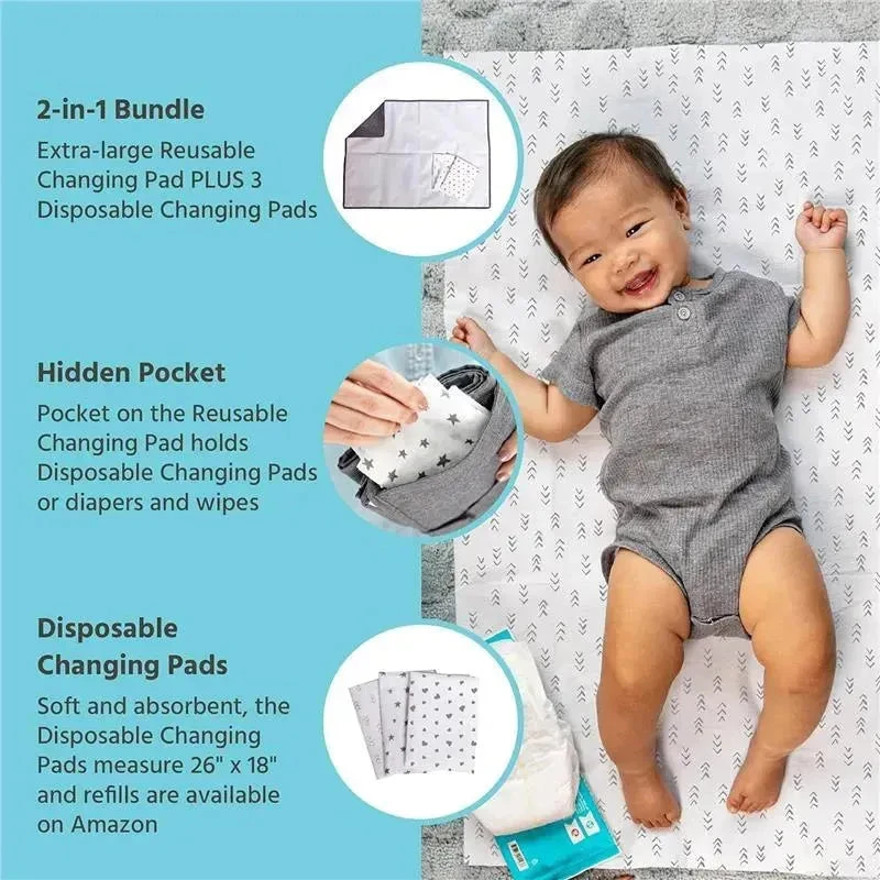 J.L. Childress – Healthy Habits, Baby Changing Pad BUNDLE, Extra-Large, Grey