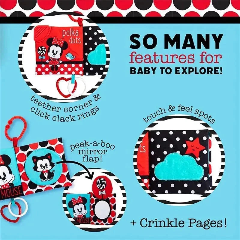 STORYTIME WITH MINNIE MOUSE: Help baby to learn and begin story time with a soft fabric book featuring Disney Minnie Mouse. An adorable 5 inch on-the-go book lets baby play and develop as you read together.
