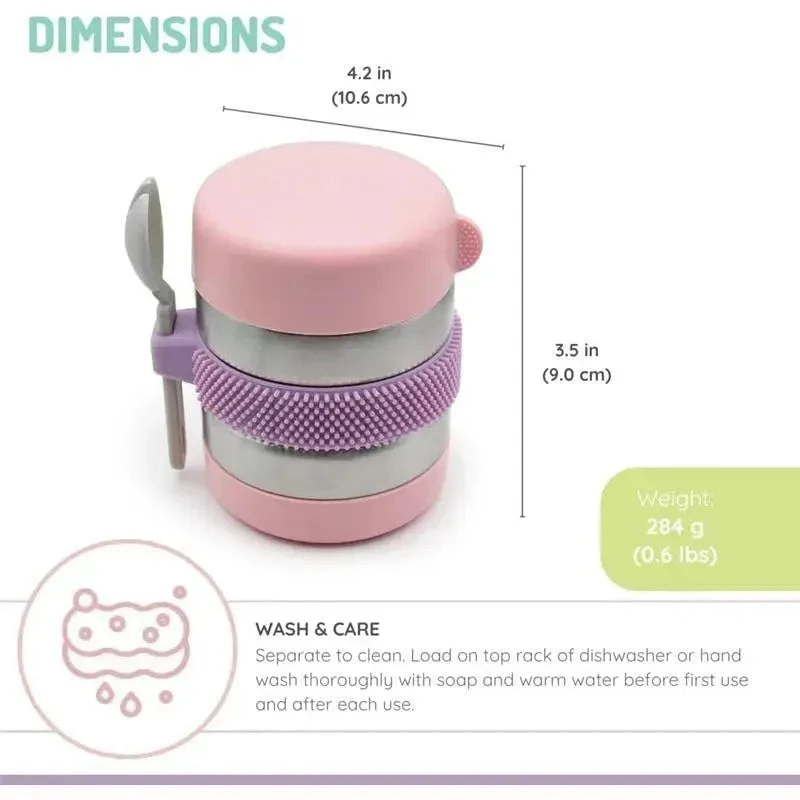 INTEGRATED FORK: Comes with a matching fork, integrated into the silicone sleeve so everything has a place, which comes in handy if your kids are anything like ours and misplace anything that isn’t attached to them!