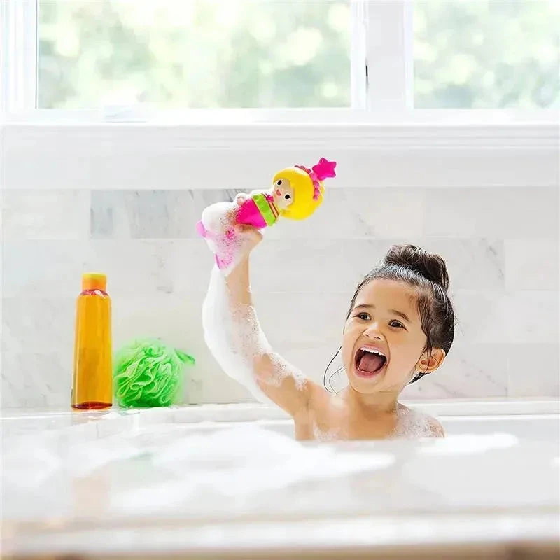 Let’s go for a dive next bath time. The Munchkin Mermaid Swimming Bath Toy is made for underwater fun with a fin that flaps and makes this darling mermaid swim around the tub. The attached crown pendant pull cord is easy for little hands to operate and teaches your toddler valuable skills like hand and eye coordination and action and reaction. Time to make a splash.