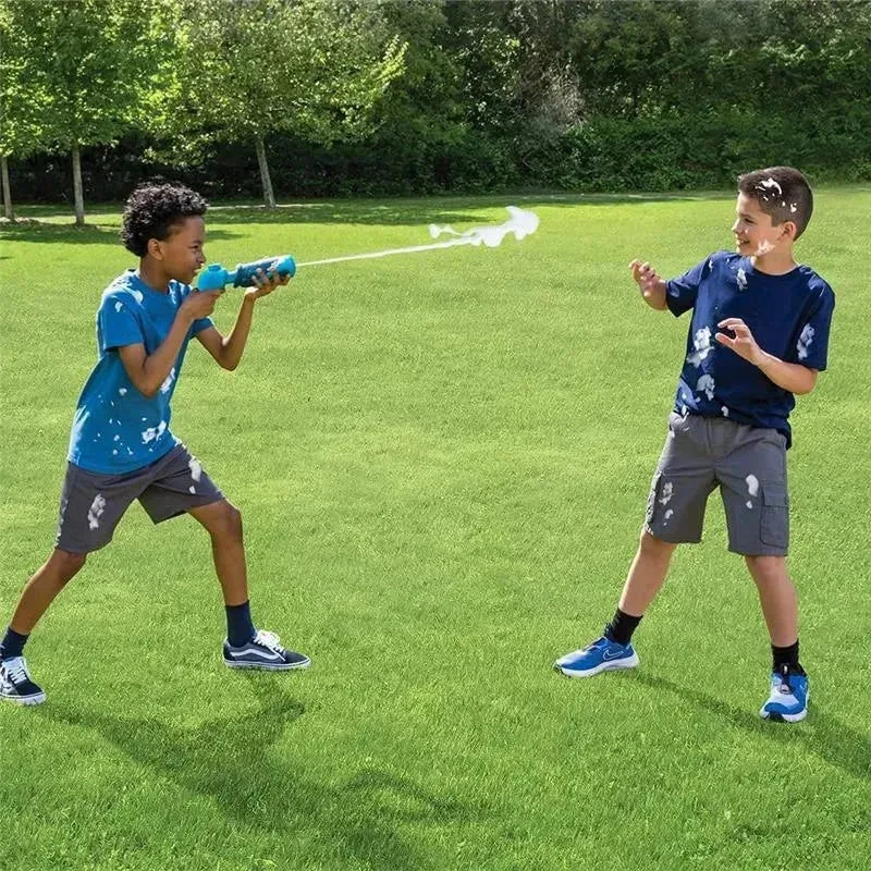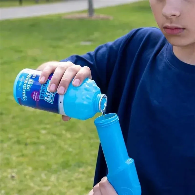 Introducing Fom Mania, the first kid powered Fom line brought right to your backyard! Become Foam Maniacs and get your foam battle on! This all-new foam blaster sprays foam using a simple pump action! It’s easy-to-use, doesn’t require batteries, and blasts over 30 shots of thick fluffy foam with each fill. Each Fom Mania Quickshot 2 Pack comes with two Quickshot Foam blasters and two 4 fl. oz. bottles of foam concentrate – making enough solution to fill each blaster 8 times! This is the perfect toy for birthday gifts for boys and girls for outdoor fun. Ages 5years and up and no assembly required. Clean up is easy: take out the hose and wash it away or wait for it to disappear on its own within a few hours. Either method is safe for the environment – but for best lawn care we recommend washing it away. This is not your little brothers water, bubble or dart blaster – it is time to level up to FOM and get ready to play!
