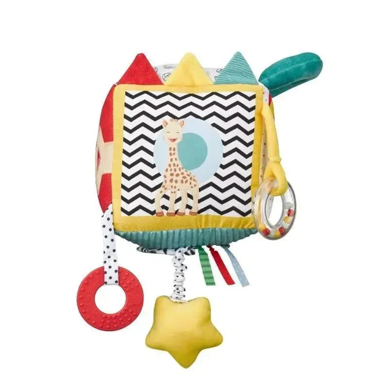 With the Sensory play cube from Sophie la girafe®, your child will learn to discover the world with all its exciting sounds, colors and shapes through play. The different elements and materials used stimulate the sense of touch and fine motor skills. A teething ring to chew on, crackling leaves, a beeping bird, the rattle and soft sounds of the music box – there is always something new and exciting to try out and discover.